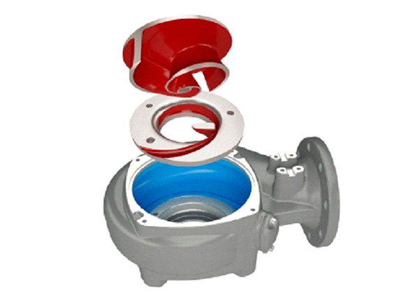 葉輪采用半開式雙葉片、后掃式、無堵塞設(shè)計,導(dǎo)葉部分進行了硬化處理。當葉輪旋轉(zhuǎn)時能夠通過泵室(或插入環(huán))上的釋放凹槽對葉輪進行清潔,使葉片上不積累雜質(zhì),從而維持水泵能無堵塞運行。葉輪具有特定角度的完全后掃式導(dǎo)葉,能夠處理固體、纖維、粘稠污泥和其它污水中的雜質(zhì)。